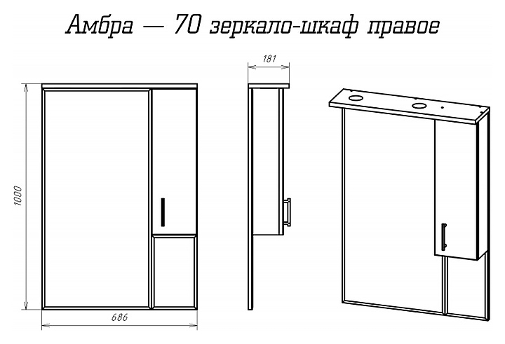 Зеркало Misty Амбра-70 68,6х100 см со шкафчиком, правое, белое