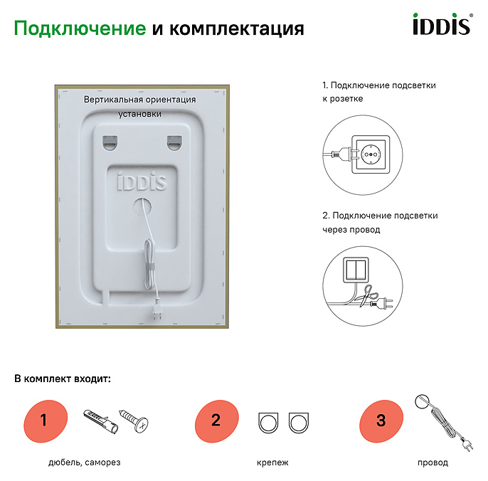 Зеркало IDDIS Zodiac ZOD5000i98 от популярного бренда дополнит интерьер ванной комнаты. Модель оснащена светодиодной подсветкой и скрытым механическим выключателем. Корпус выполнен из прочного ударопрочного ABS-пластика. В комплект постаки входят дюбель, саморез, крепеж и провод. Дополнительные характеристики: