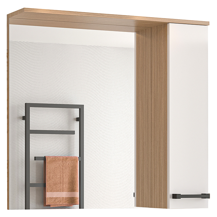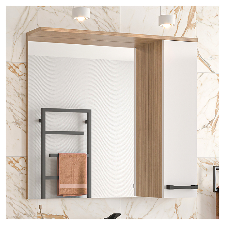 Шкаф зеркальный Misty Крафт-80 80,4х75 см правый, белый, зебрано сахара