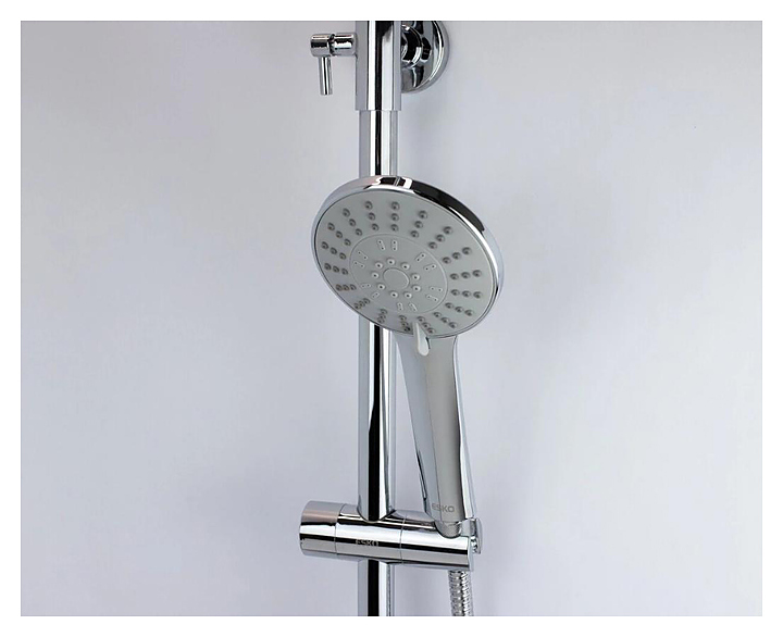 Душевая стойка ESKO ST1200 используется в ванных комнатах. Изделие оснащено круглыми верхним душем и ручной лейкой. Модель оборудована керамическим картриджем, обеспечивающим плавный ход рычага смесителя, контроль и точность при выборе напора и температуры воды. Изделие выполнено из нержавеющей стали, отличающейся прочностью и долговечностью, верхний душ - из ABS-пластика. В комплект поставки входит монтажный комплект. Особенности: