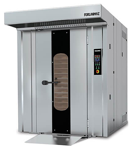 Ротационная печь Porlanmaz Bakery Machinery PMDF 50 применяется на профессиональных кухнях пекарен и кондитерских для выпекания хлеба, булочек, кексов, коржей, бисквитов, печенья, пироженых, круассанов и других изделий из теста. Модель оснащена лампами освещения на дверях кабины печи, которые легко заменяются снаружи. Камера сгорания выполнена из нержавеющей стали, с выносливостью больше 1000 градусов тепла. Особенности:
