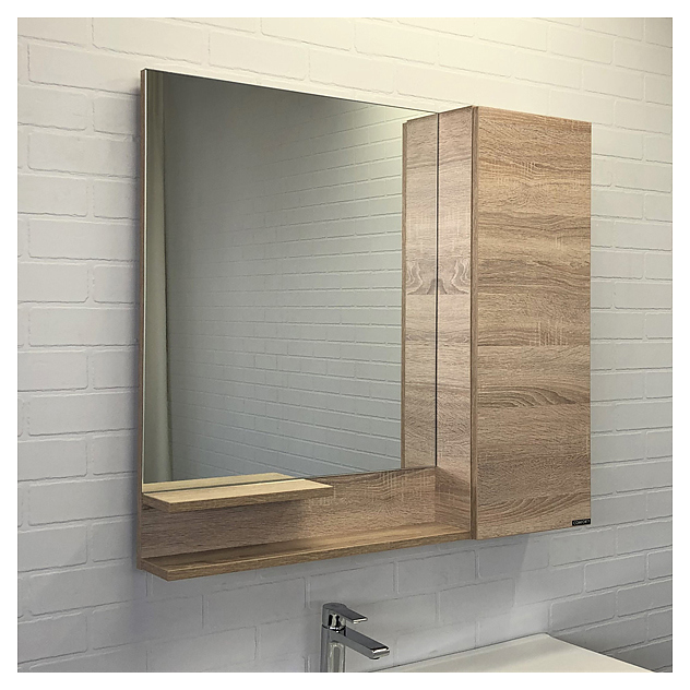 Зеркало Comforty Варна-90 дополнит интерьер любой ванной комнаты. Благодаря подвесной конструкции модель не занимает много места, что позволяет экономить пространство в ванной комнате, а также облегчает уборку. Модель оснащена 2 открытыми полками в нижней части, шкафчиком с распашной дверцей и 2 полками внутри. Корпус и фасад выполнены из влагостойкой ЛДСП, зеркальное полотно - амальгамой на основе серебра. Дополнительные характеристики: