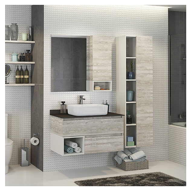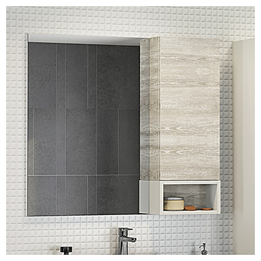 Правое зеркало Comforty Прага-90 дополнит интерьер любой ванной комнаты. Благодаря подвесной конструкции модель не занимает много места, что позволяет экономить пространство в ванной комнате, а также облегчает уборку. Модель оснащена открытой полкой в боковой части, шкафчиком с системой Push-to-open (открытие при нажатии) и полкой внутри. Изделие выполнено из влагостойкой ЛДСП, зеркальное полотно - с амальгамой на основе серебра. Дополнительные характеристики: