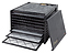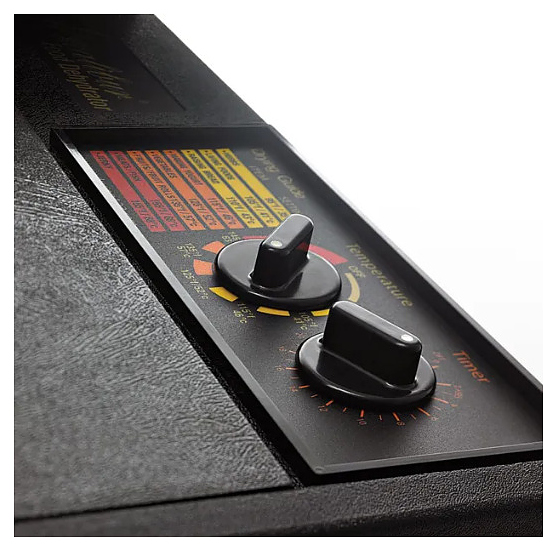 Дегидратор Excalibur 4926T220G предназначен для сушки овощей, фруктов, ягод, орехов, грибов и трав, расстойки теста, приготовления йогурта, сыра, вяления мяса и рыбы на предприятиях общественного питания и в домашних условиях. Модель оснащена расположенными в задней стенке нагревательным элементом и вентилятором, электронным термостатом, съемной дверцей и панелью управления с 2 поворотными регуляторами. Лотки выполнены из высококачественного поликарбоната без содержания бисфенола А (BPA). В комплект поставки входят 9 лотков с гибкими вставками. Особенности: