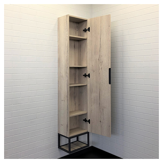 Шкаф-пенал Comforty Порто-35 дополнит интерьер ванной комнаты. Благодаря подвесной конструкции изделие не занимает много места, что позволяет экономить пространство в небольшой ванной комнате, а также облегчает уборку. Модель оснащена открытой полкой в нижней части, распашной дверью и 4 полками внутри. Изделие выполнено из влагостойкой ЛДСП. Дополнительные характеристики: