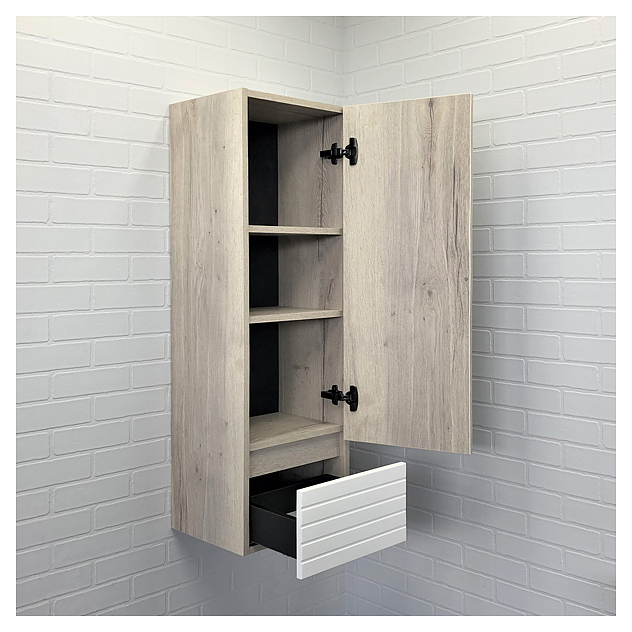 Шкаф-пенал Comforty Страсбург-35 дополнит интерьер ванной комнаты. Благодаря подвесной конструкции изделие не занимает много места, что позволяет экономить пространство в небольшой ванной комнате, а также облегчает уборку. Модель оснащена дверцей, выдвижным ящиком и 2 полками внутри. Изделие выполнено из влагостойкой ЛДСП. Дополнительные характеристики: