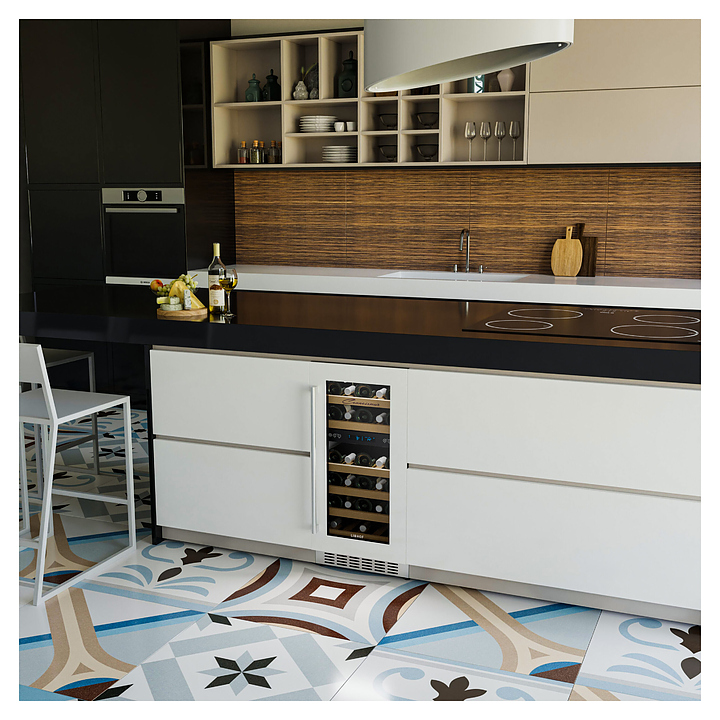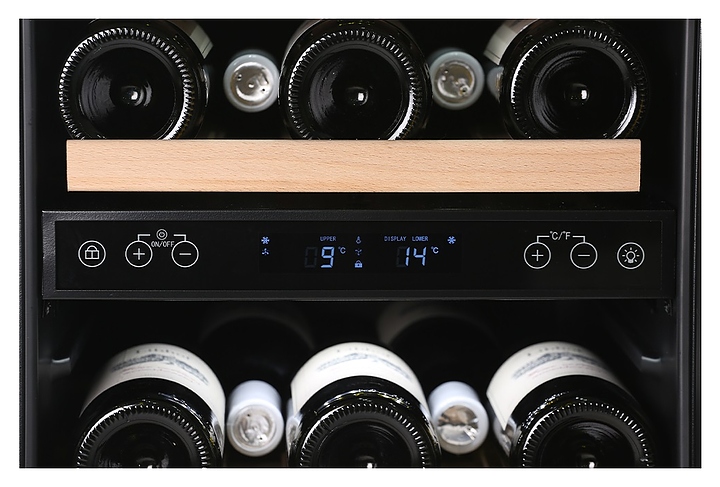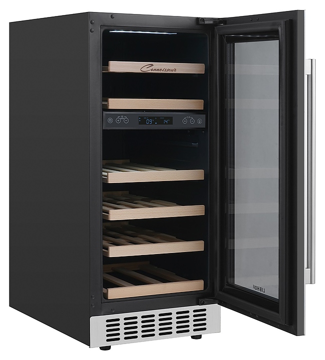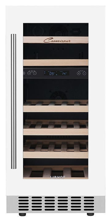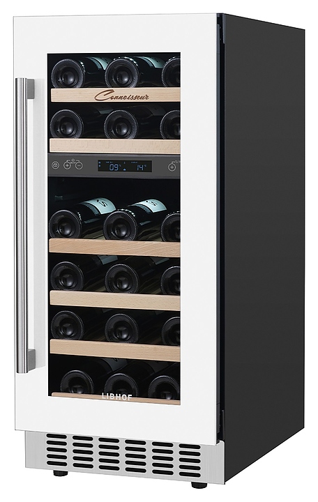 Встраиваемый винный шкаф Libhof Connoisseur CXD-28 White предназначен для хранения при оптимальных условиях бутилированного вина различных сортов в барах, ресторанах, специализированных магазинах, подсобных складских помещениях, а также в домашних условиях. Модель оснащена холодильной камерой, 6 полками с направляющими для размещения бутылок, распашной дверью с внутренними петлями, длинной вертикальной рукояткой, прозрачным дымчатым обзорным стеклом и сенсорной панелью управления с цифровым дисплеем с индикацией синего цвета. Корпус выполнен из металла с антикоррозийным покрытием фронта белого цвета, рукоятка – из металла серебристого цвета, полки – из массива буковой древесины. В комплект поставки входят крепеж для рукоятки и инструкция по эксплуатации. Особенности: