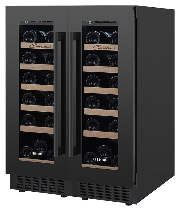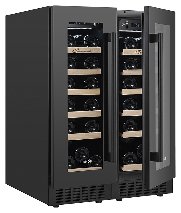 Встраиваемый винный шкаф Libhof Connoisseur CXD-38 Black предназначен для хранения при оптимальных условиях бутилированного вина различных сортов в барах, ресторанах, специализированных магазинах, подсобных складских помещениях, а также в домашних условиях. Модель оснащена 2 холодильными камерами, 12 полками с направляющими для размещения бутылок, 2 распашными дверьми с внутренними петлями, длинными вертикальными рукоятками, прозрачными дымчатыми обзорными стеклами и 2 сенсорными панелями управления с цифровыми дисплеями с индикацией синего цвета. Корпус и рукоятки выполнены из металла с антикоррозийным покрытием черного цвета, полки – из массива буковой древесины. В комплект поставки входят крепеж для рукояток и инструкция по эксплуатации. Особенности: