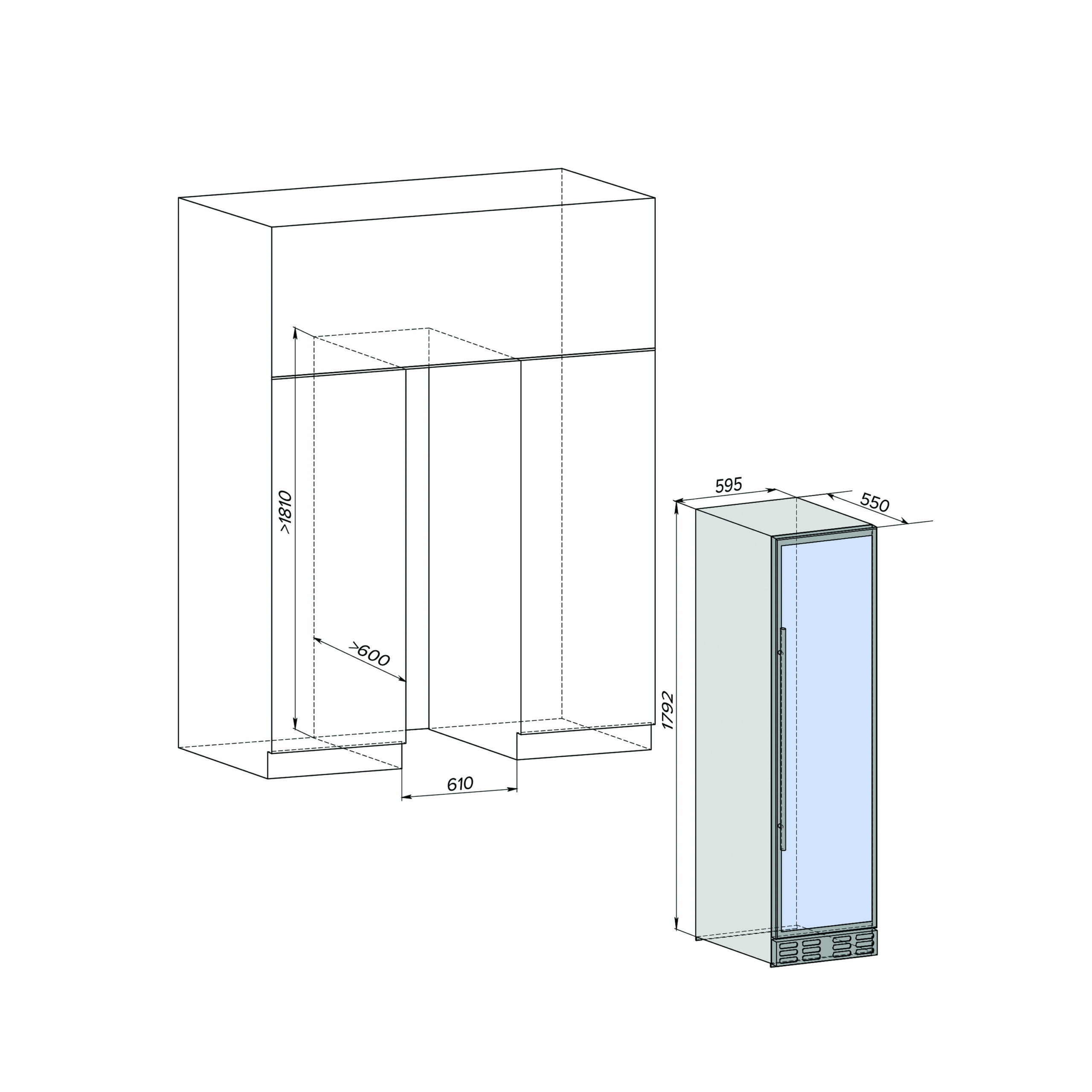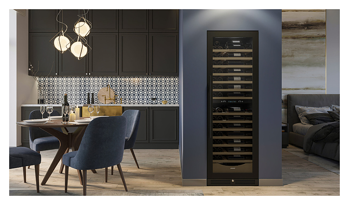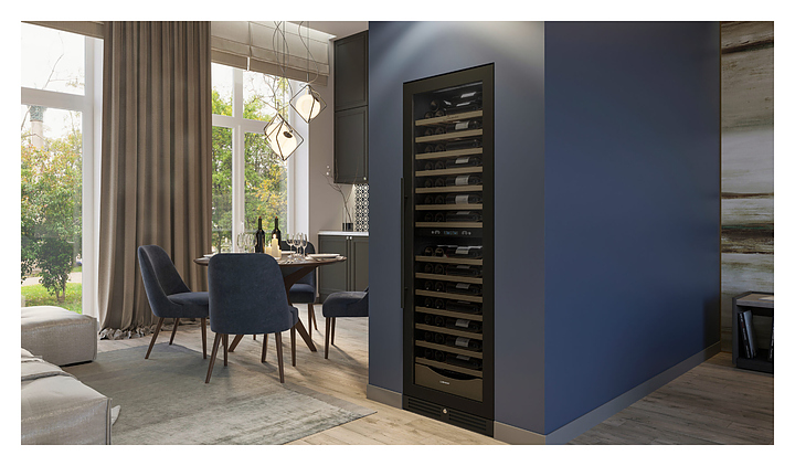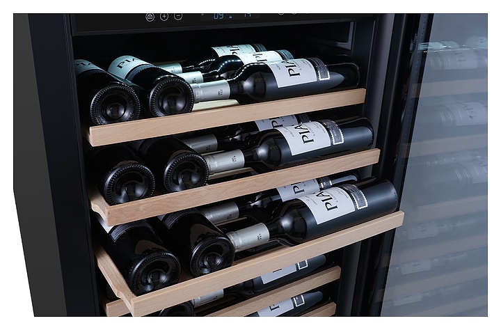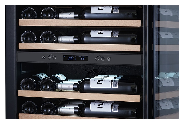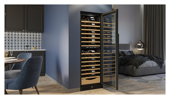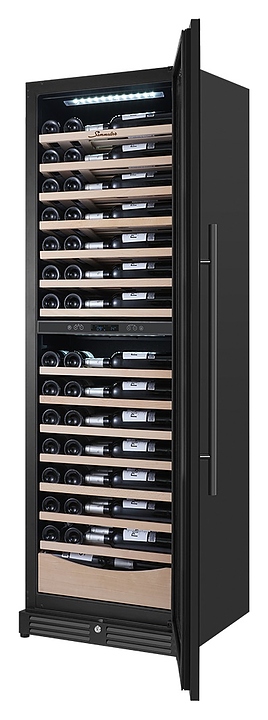 Встраиваемый винный шкаф Libhof Sommelier SMD-110 Slim Black предназначен для хранения при оптимальных условиях бутилированного вина различных сортов в барах, ресторанах, специализированных магазинах, подсобных складских помещениях, а также в домашних условиях. Модель оснащена холодильной камерой, 15 полками с направляющими для размещения бутылок, запираемой на ключ распашной дверью с внутренними петлями, длинной вертикальной рукояткой, прозрачным дымчатым обзорным стеклом и сенсорной панелью управления с цифровым дисплеем с индикацией синего цвета. Корпус и рукоятка выполнены из металла с антикоррозийным покрытием черного цвета, полки – из массива буковой древесины. В комплект поставки входят крепеж для рукоятки, 2 ключа от дверного замка и инструкция по эксплуатации. Особенности: