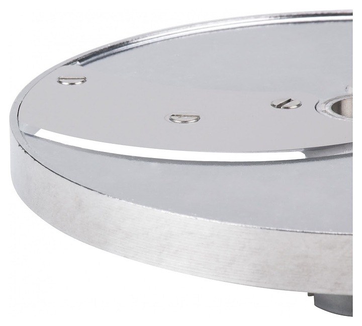 Диск для нарезки слайсами Robot Coupe 28063W серии Эксперт используется совместно с овощерезками CL50 и CL50 Ultra, CL52, CL55, CL60 и кухонными процессорами R502, R752 для нарезки овощей и фруктов и дальнейшего использования их в качестве ингредиентов для приготовления супов, салатов, гарниров и пр. на предприятиях общественного питания и торговли. Изделие выполнено из алюминия. Новый тип обработки поверхности дисков "Mineral+" обеспечивает оптимальную защиту поверхности диска и упрощает их очистку, а также, снижает трение о диск, обеспечивая идеальный разрез и сохраняет свежесть нарезаемых продуктов. Дополнительная защита анодированного алюминия позволяет мыть диски в посудомоечных машинах с использованием стандартных моющих средств (не для алюминия). Характеристики: