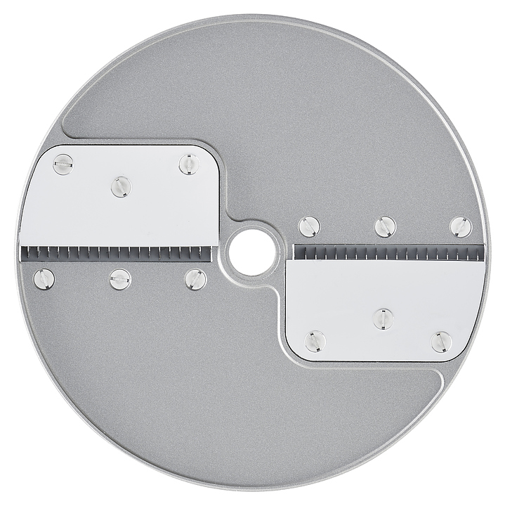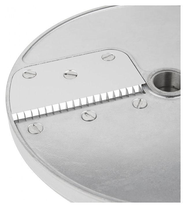 Диск для нарезки соломкой Robot Coupe 27072W серии Эксперт используется совместно с овощерезками CL50 и CL50 Ultra, CL52, CL55, CL60 и кухонными процессорами R502, R752 для нарезки овощей и фруктов и дальнейшего использования их в качестве ингредиентов для приготовления супов, салатов, гарниров и пр. на предприятиях общественного питания и торговли. Изделие выполнено из алюминия. Новый тип обработки поверхности дисков "Mineral+" обеспечивает оптимальную защиту поверхности диска и упрощает их очистку, а также, снижает трение о диск, обеспечивая идеальный разрез и сохраняет свежесть нарезаемых продуктов. Подходит для мытья в посудомоечной машине. Характеристики: