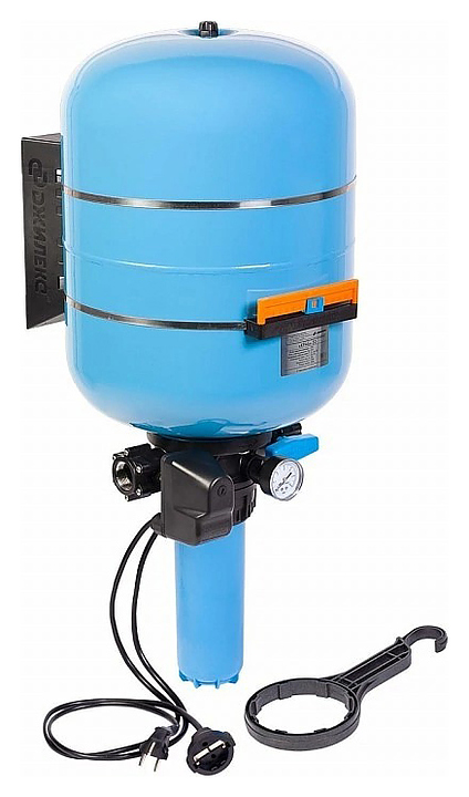 Комплект автоматизации на баке Джилекс КРАБ 50 предназначен для автоматического управления включением и выключением электронасосов, поддержания заданного давления в системах водоснабжения и предварительной фильтрации воды в частных домах. Модель оснащена гидроаккумулятором со сменной мембраной, манометром, воздушным клапаном, реле давления РДМ и сливной пробкой. Корпус выполнен из пластика. Изделие устойчиво к коррозии. В комплект поставки входят фильтрующий картридж, ключ для корпуса фильтра, кронштейн со стальным хомутом для крепления к вертикальной поверхности, площадка с датировкой и ползунком для фиксации месяца замены фильтрующего картриджа, заглушки 1/4” и 3/4” для реверса подачи воды, силовой кабель с вилкой и силовой кабель с розеткой для подачи электрического тока к насосу. Особенности: