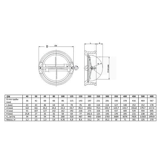 Клапан обратный Zetkama 2/створ 407A Ду 125 Ру16 Тмакс=100 оС межфл створки нерж