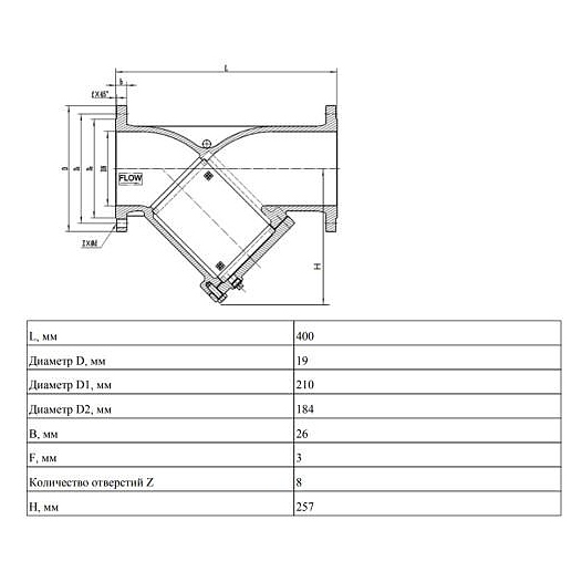 Фильтр сетчатый Ридан Y-образный чугун Ду 125 Ру16 фл ФСФ со сливной пробкой