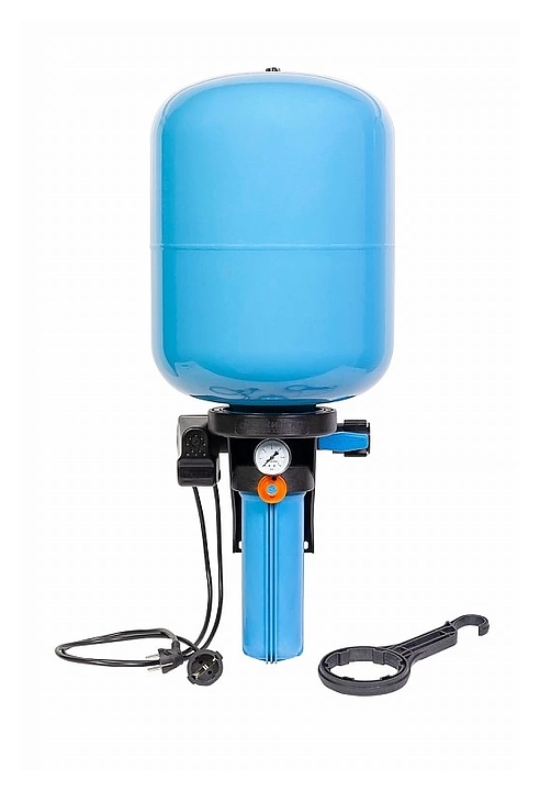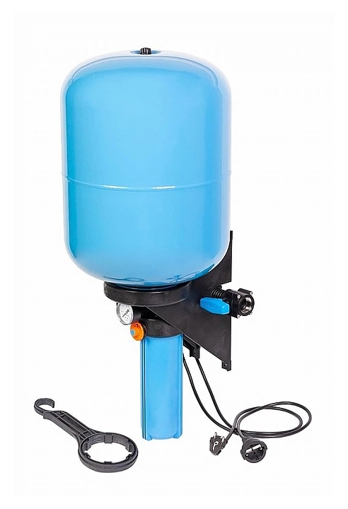 Комплект автоматизации на баке Джилекс КРАБ-Т 50 предназначен для автоматического управления включением и выключением электронасосов, поддержания заданного давления в системах водоснабжения и предварительной фильтрации воды в частных домах. Модель оснащена гидроаккумулятором, колбой картриджного фильтра, манометром, устройством индикации месяца замены фильтрующего элемента, сьемным коллектором со встроенным шаровым краном, обратным клапаном, реле давления со штуцером и кабелем с вилкой для подключения к сети. Корпус выполнен из пластика. Изделие устойчиво к коррозии. В комплект поставки входят фильтрующий картридж, ключ для корпуса фильтра, кронштейн со стальным хомутом для крепления к вертикальной поверхности, площадка с датировкой и ползунком для фиксации месяца замены фильтрующего картриджа, заглушки 1/4” и 3/4” для реверса подачи воды, силовой кабель с вилкой и силовой кабель с розеткой для подачи электрического тока к насосу. Особенности:
