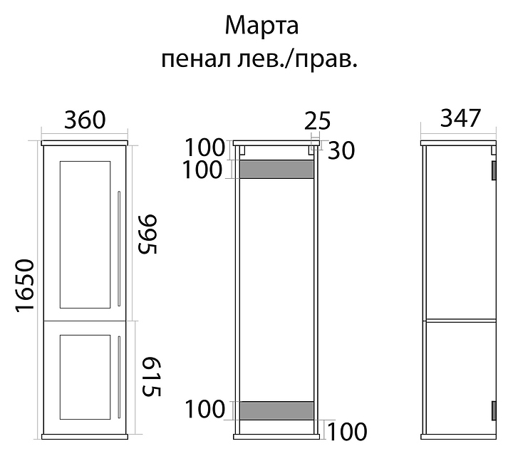 Шкаф-пенал Misty Марта-35 36х165 см, с бельевой корзиной, правый, белый