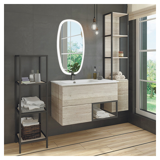 Полка Comforty Мальме-35 используется в ванных комнатах для размещения банных принадлежностей. Модель оснащена 2 открытыми полками и распашной дверцей с системой открытия при нажатии push-to-open. Изделие выполнено из влагостойкой ЛДСП, каркас - из стали. Характеристики: