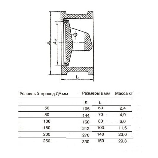 Клапан обратный Мегастрой чугун поворотный 19ч21бр Ду 80 Ру16 Тмакс=225 оС межфл заслонка чугун исполнение "Г"