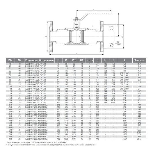 Кран шаровой LD сталь КШ.Ц.Ф Ду 20 Ру40 фл полнопроходной