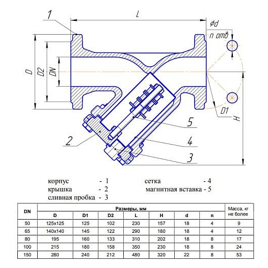 Фильтр магнитный ЛМЗ сетчатый Y-образный чугун Ду 50 Ру16 Тмакс=150 oC фл ФСМ