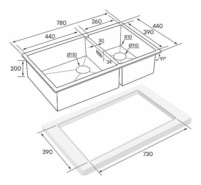 Мойка Paulmark Axel PM227844-BG предназначена для рационального планирования рабочего места на кухне. Вместительная чаша большого размера и небольшая дополнительная чаша расположены параллельно друг другу. Модель устанавливается сверху, снизу или в один уровень со столешницей. Изделие выполнено из нержавеющей стали, которая отличается надежностью, ударопрочностью и стойкостью к износу. Дополнительные характеристики: