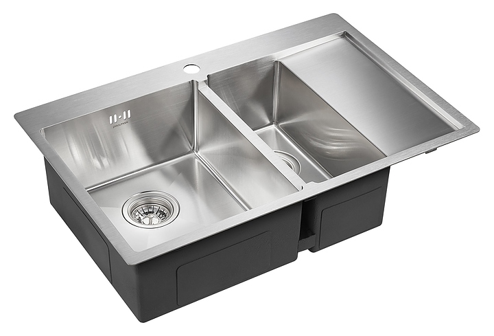 Левосторонняя мойка Paulmark Liga PM227851-BSL предназначена для рационального планирования рабочего места на кухне. Вместительная чаша большого размера и небольшая дополнительная чаша расположены параллельно друг другу. Модель оснащена широкой задней поверхностью для размещения смесителя и аксессуаров. Крыло-сушилка служит подставкой для посуды и продуктов. Мойка устанавливается сверху или в один уровень со столешницей. Изделие выполнено из нержавеющей стали, которая отличается надежностью, ударопрочностью и стойкостью к износу. Дополнительные характеристики: