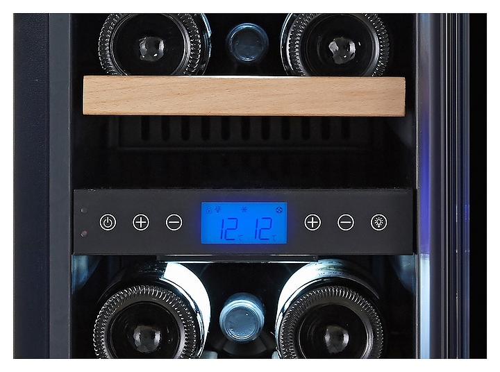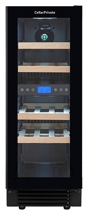 Встраиваемый винный шкаф Cellar Private CP017-2TBH предназначен для хранения при оптимальных условиях бутилированного вина различных сортов в барах, ресторанах, специализированных магазинах, подсобных складских помещениях, а также в домашних условиях. Модель оснащена холодильной камерой с 2 температурными зонами, 4 съемными полками, распашной перенавешиваемой дверью со скрытой рукояткой и прозрачным тонированным обзорным стеклом, а также сенсорной панелью управления с жидкокристаллическим дисплеем внутри камеры. Корпус выполнен из металла с покрытием черного цвета, полки – из массива древесины. Особенности: