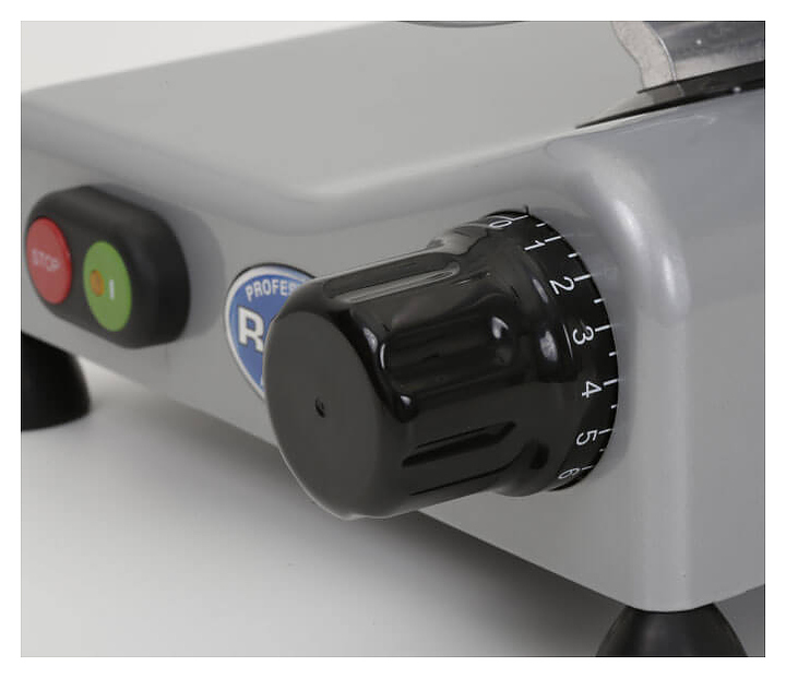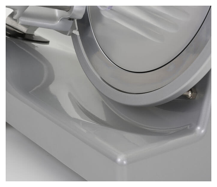 Слайсер RGV Lusso 22 G/A CEV Prof предназначен для нарезки мяса, сыров, колбасных изделий, хлеба и других гастрономических изделий на ровные ломтики на предприятиях общественного питания, торговли и пищевой промышленности. Модель оснащена наклонным дисковым ножом. Основание выполнено из алюминия, покрытого пригодной для контакта с пищевыми продуктами краской, лезвие – из закаленной шлифованной стали с твердым хромированным покрытием, крышка ножа, лоток для продуктов, перегородка для регулировки нарезки и фиксированное защитное кольцо лезвия – из анодированого алюминия с полированным покрытием, защитный экран – из плексигласа. Особенности: