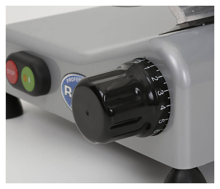 Слайсер RGV Lusso 25 G/A CEV Prof предназначен для нарезки мяса, сыров, колбасных изделий, хлеба и других гастрономических изделий на ровные ломтики на предприятиях общественного питания, торговли и пищевой промышленности. Модель оснащена наклонным дисковым ножом. Основание выполнено из алюминия, покрытого пригодной для контакта с пищевыми продуктами краской, лезвие – из закаленной шлифованной стали с твердым хромированным покрытием, крышка ножа, лоток для продуктов, перегородка для регулировки нарезки и фиксированное защитное кольцо лезвия – из анодированого алюминия с полированным покрытием, защитный экран – из плексигласа. Особенности: