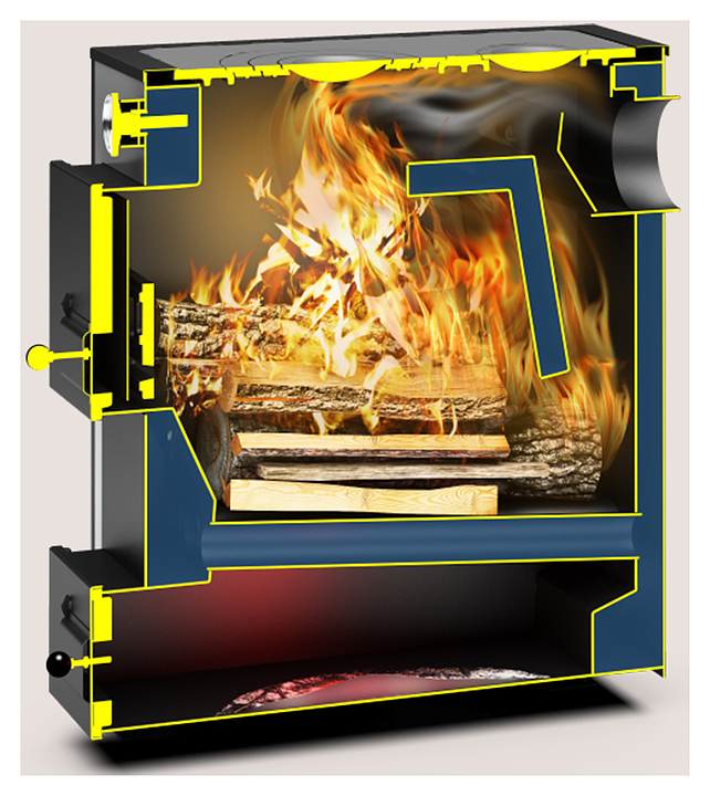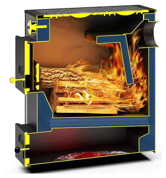 - Зольная - для регулировки интенсивности горения, оснащена заслонкой подачи первичного воздуха