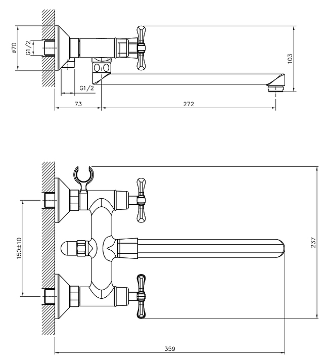 Смеситель Decoroom DR52043 предназначен для использования в ванных помещениях для подачи горячей и холодной воды. Модель оснащена керамическим картриджем, обеспечивающим плавный ход рычага смесителя, контроль и точность при выборе напора и температуры воды. Изделие выполнено из металла, который отличается прочностью, долговечностью и устойчивостью к перепадам температур. В комплект поставки входит настенное крепление и однорежимный ручной душ со шлангом. Особенности: