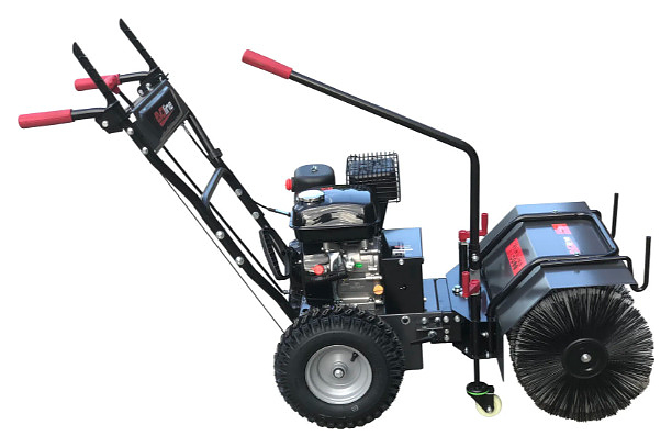 Бензиновая подметальная машина EVOline SWG 620-200 предназначена для уборки мусора, опавшей листвы, грязи и неглубокого снежного покрова на производственных объектах, в складских помещениях, на садово-парковых и придомовых территориях. Модель оcнащена 1-цилиндровым 4-тактным двигателем внутреннего сгорания ZONGSHEN 168 FB с воздушным охлаждением и верхним расположением клапана, трансмиссией с фрикционным диском, элементами управления, 2 колесами и ворсовой щеткой. Ведущая рукоятка и рычаг регулировки направления выполнены из трубчатого металлического профиля с антикоррозийным покрытием, ворс щетки – из износостойкого полимера. Особенности: