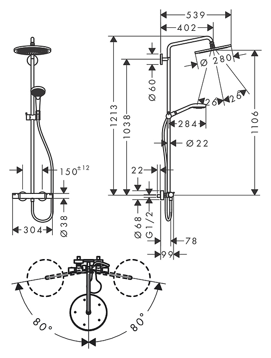 Комплект душевой термостат Hansgrohe Croma Select S 26890700