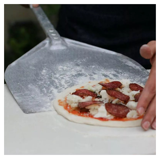 Лопата GiMetal F-32R серии Amica используется на небольших предприятиях пищевой промышленности, общественного питания и торговли, а также в домашних условиях для загрузки, выгрузки и поворачивания в процессе приготовления в печи пиццы и других хлебобулочных изделий. Модель оснащена прямоугольной головкой и длинной рукояткой. Головка выполнена из высококачественной алюминированной стали, рукоятка и заклепки – из алюминия. Особенности: