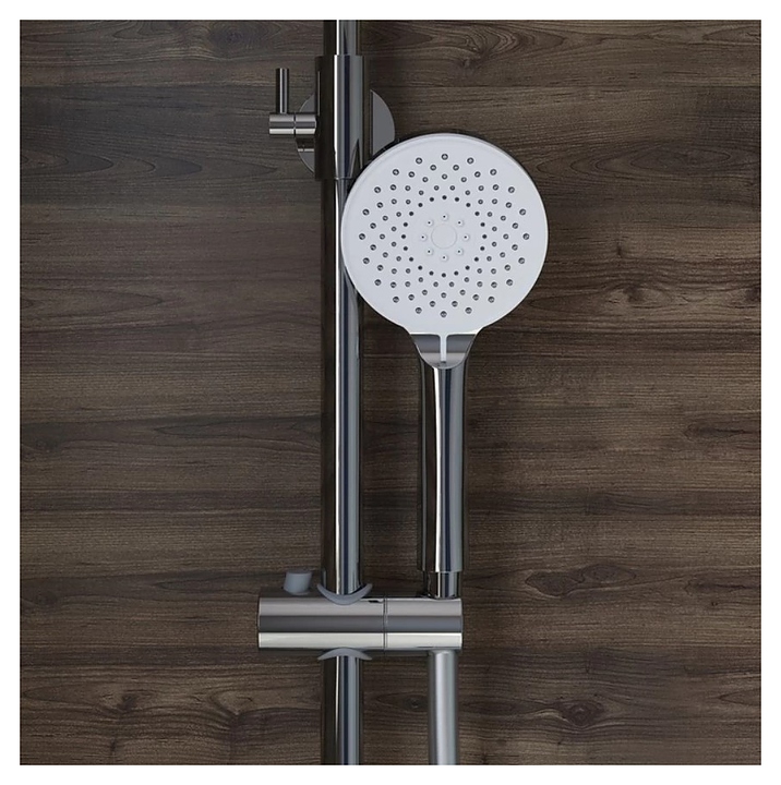 Душевой комплект IDDIS Shelfy SHESB3Bi06 используется в ванных комнатах. Модель оснащена системой Push Control, которая позволяет кнопками осуществлять переключение режимов с излива на верхнюю или нижнюю лейку. Регулировка температуры воды до комфортной производится поворотом ручки, оптимальный напор воды - определяется при установке. Изделие выполнено из высококачественной латуни, которая отличается прочностью, долговечностью и устойчивостью к перепадам температур. Комплектация: