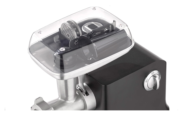 Мясорубка CASO FW 2000 – BEEF-Edition используется в частных домах и квартирах для измельчения мяса и рыбы при производстве фарша. Модель оснащена мощным двигателем, 2 уровнями скорости и функцией реверса. Корпус и поддон выполнены из алюминия, нож - с титановым покрытием, шестерни - металлические. Комплектация: