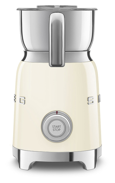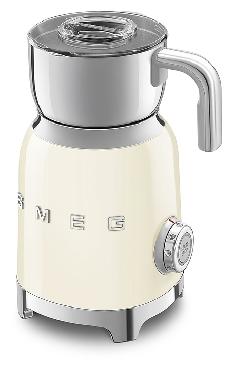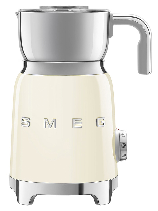 Вспениватель молока Smeg MFF11CREU используется в частных домах и квартирах для приготовления молочной пены для кофейных напитков и горячего шоколада. Модель выполнена в стиле 50-х годов. Корпус и кувшин изготовлены из нержавеющей стали, крышка - из тритана, ручка - из пластика. Комплектация: