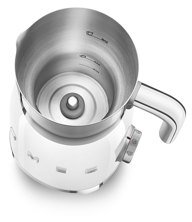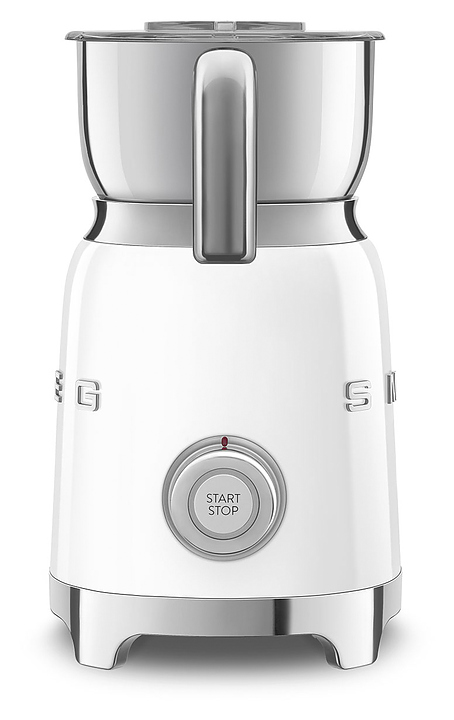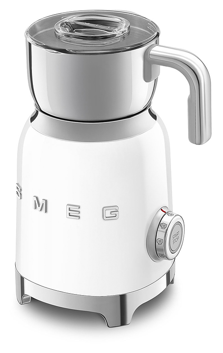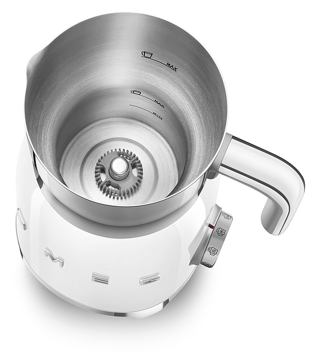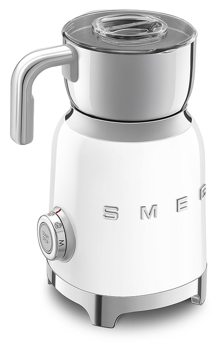 Вспениватель молока Smeg MFF11WHEU используется в частных домах и квартирах для приготовления молочной пены для кофейных напитков и горячего шоколада. Модель выполнена в стиле 50-х годов. Корпус и кувшин изготовлены из нержавеющей стали, крышка - из тритана, ручка - из пластика. Комплектация: