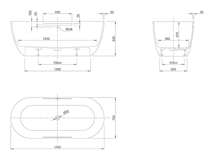 Ванна Knief Lotus 170х75 см, Stone