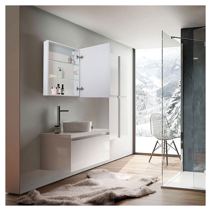 Зеркальный шкаф Silver Mirrors Киото Flip LED-00002473 выполнен в современном и лаконичном стиле и отлично дополнит интерьер любой ванной комнаты. Благодаря подвесной конструкции модель не занимает много места, что позволяет экономить пространство в небольшой ванной комнате, а также облегчает уборку. Модель оснащена распашной дверцей со стеклянными полками внутри, встроенной в боковой части корпуса розеткой и светодиодной подсветкой с сенсорным включателем. Корпус изделия выполнен из влагостойкой ЛДСП, которая обеспечивает изделию привлекательный внешний вид, а также износостойкость и долговечность. Особенности: