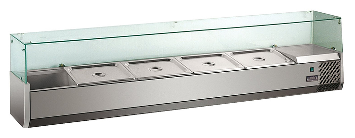 Холодильная витрина Hurakan HKN-VRX1200/330 предназначена для демонстрации, охлаждения и краткосрочного хранения закусок, салатов, ингредиентов для пиццы и скоропортящихся продуктов на предприятиях общественного питания и торговли. Модель имеет статическую систему охлаждения. Корпус выполнен из нержавеющей стали. Особенности: Дополнительные характеристики: