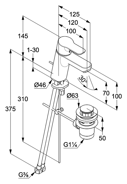 Смеситель для раковины KLUDI Pure&Easy 373829165 с донным клапаном, белый