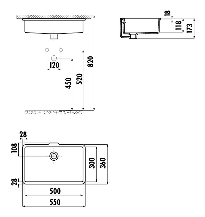 Раковина врезная под столешницу Creavit TP730-00CB00E-0000 55х36 см, фарфор, белая