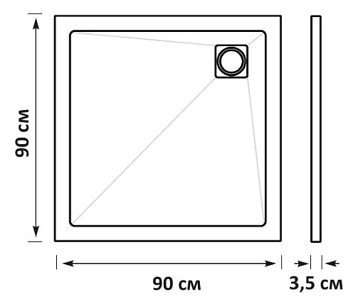 Поддон душевой Taliente Stone PTA-ST-90B 90х90х3,5 см, литьевой мрамор, чёрный, с бортом
