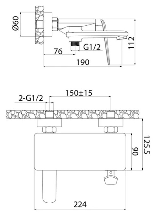 Смеситель для ванны и душа настенный IDDIS Dash DASSB00i02WA с полкой