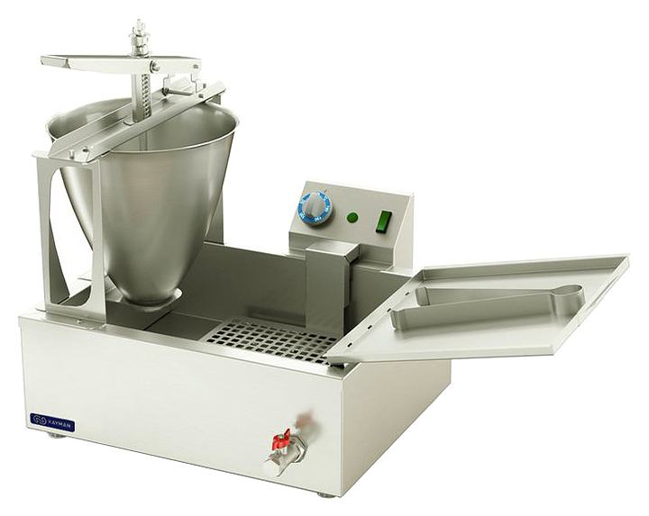 Пончиковый аппарат KAYMAN ПА-200-34 А используется на предприятиях общественного питания и торговли для формирования и приготовления в разогретом масле пончиков традиционной формы. Модель состоит из фритюрной ванны, ручного дозатора, блока управления с электронагревателем и поддона для выкладки пончиков со специальными отверстиями для стекания излишков масла. Все части аппарата выполнены из пищевой нержавеющей стали AISI 430. Особенности: