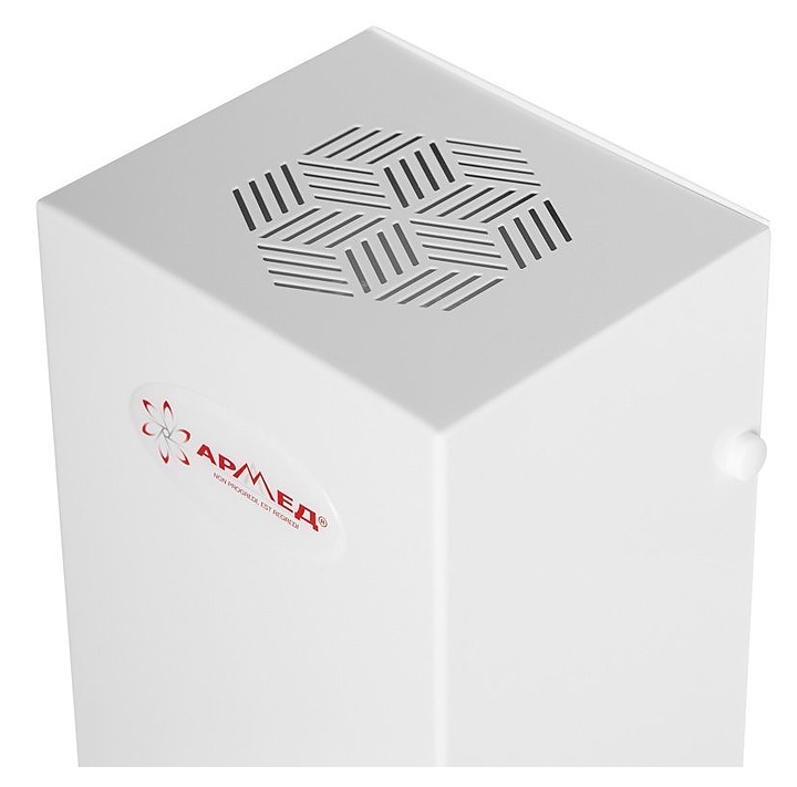 Облучатель-рециркулятор Армед CH211-115 М/1 ипредназначен для обеззараживания воздуха в помещениях с помощью губительно влияющих на микроорганизмы ультрафиолетовых лучей на предприятиях пищевой промышленности, общественного питания и торговли, в офисах, образовательных учреждениях, а также в других местах общественного пользования и домашних условиях. Модель оснащена вентилятором, воздухозаборной и воздухопроводящей решетками с декоративной перфорацией. Корпус выполнен из металла с антикоррозийным покрытием белого цвета. В комплект поставки входит 1 ультрафиолетовая лампа. Стойка не входит в комплект поставки и приобретается отдельно. Особенности: