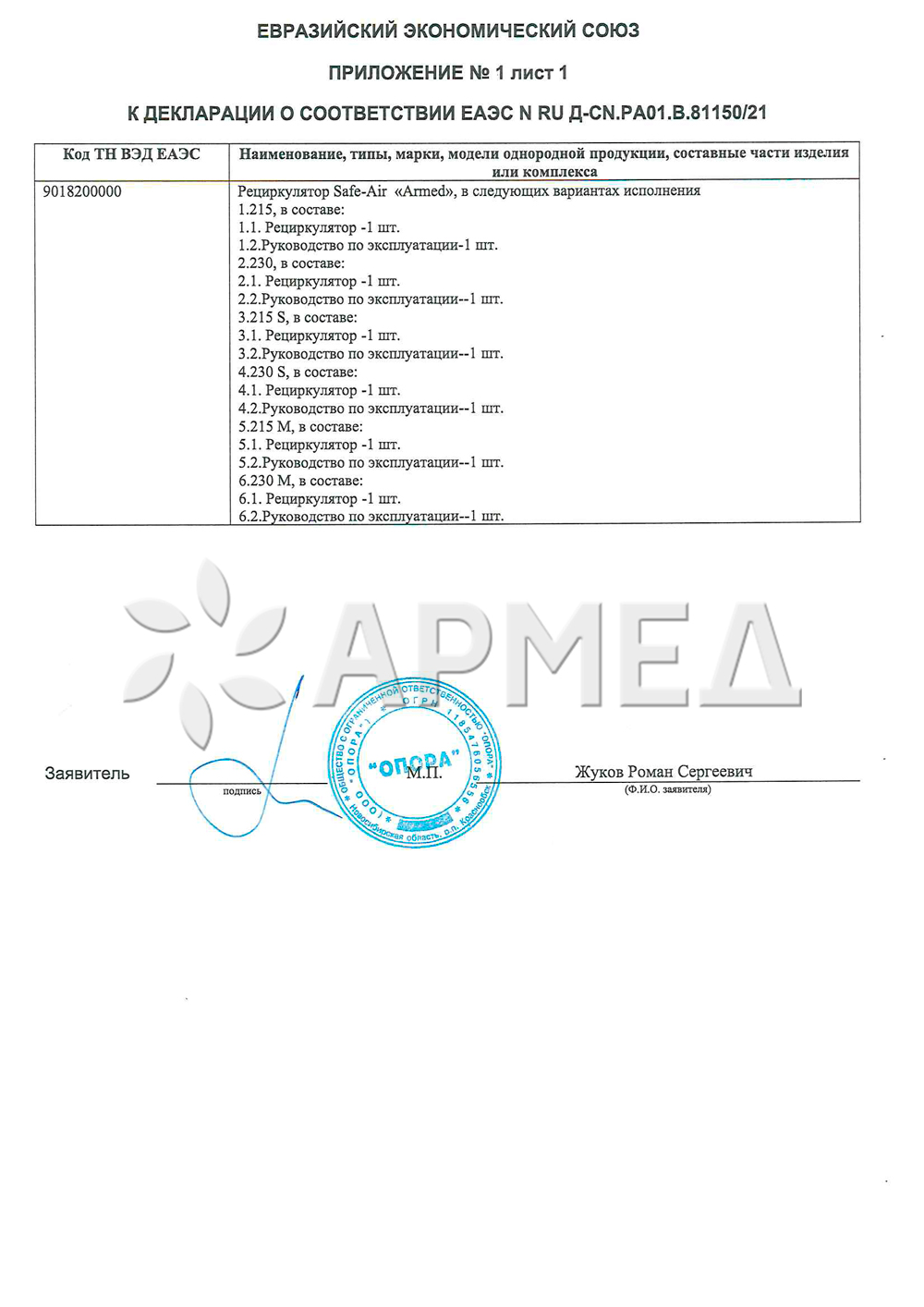 Рециркулятор бактерицидный Армед Safe-Air 215
