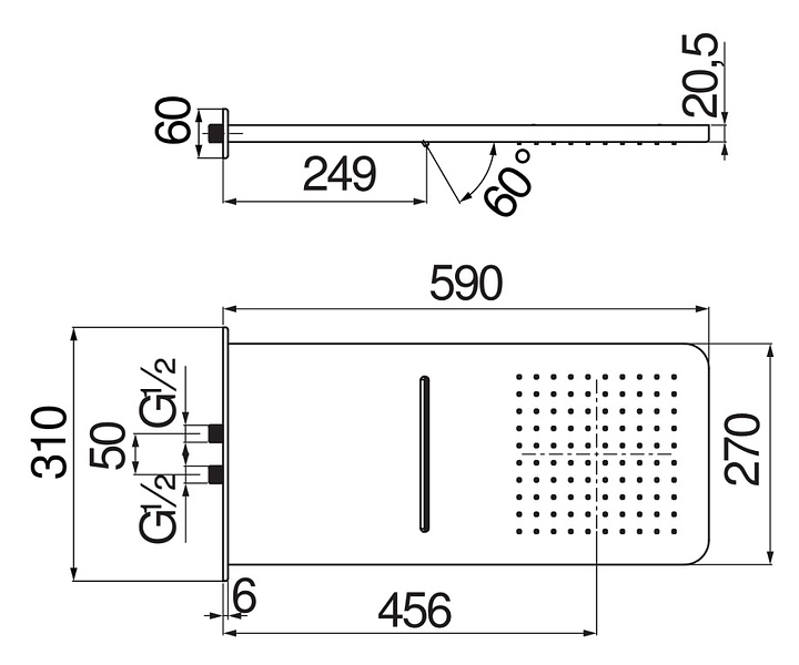 Верхний душ NOBILI AD139/130CR предназначен для использования в ванных комнатах. Модель имеет душевую головку прямоугольной формы и оснащена 2-ходовым впуском. Особенности: