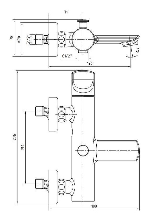 Смеситель для ванны и душа E.C.A. Myra 104502470EX